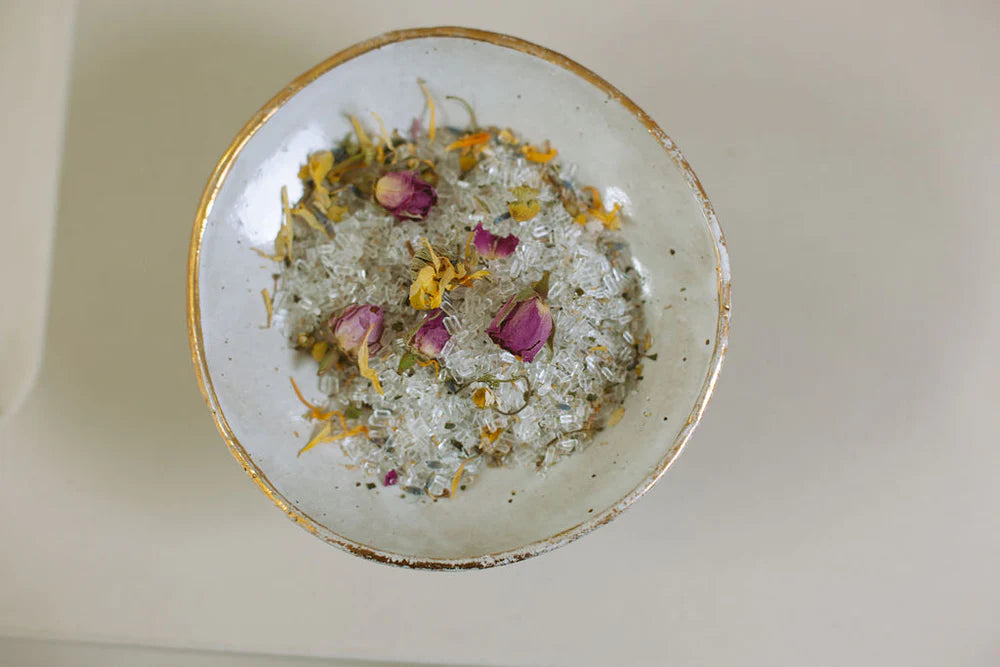 Add 3-4 tbsp for a floral bath or add to bath tea bag for a mess free option